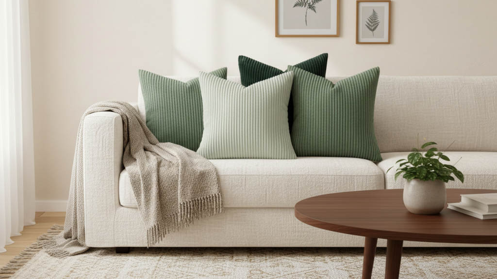 - Best styling tip: pair with one warm accent (camel, rust, or cream) so the room doesn’t feel too cool