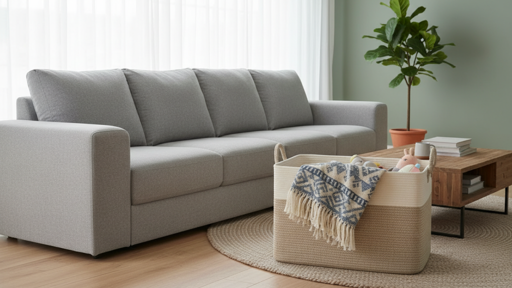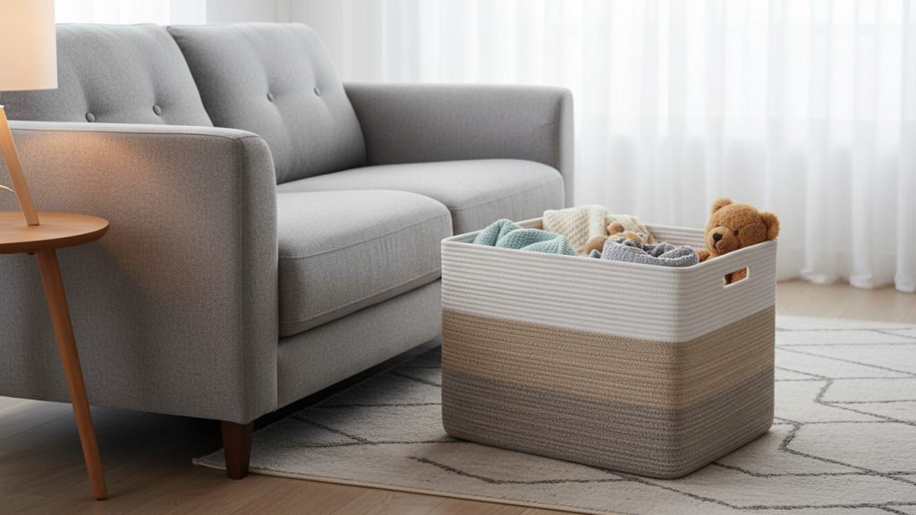 If you tell me your space (sectional vs sofa, and where you want to place the basket), I can recommend the best size + placement so it looks intentional, not bulky.